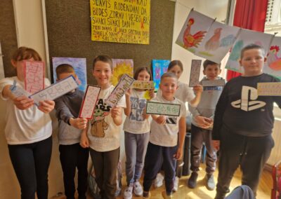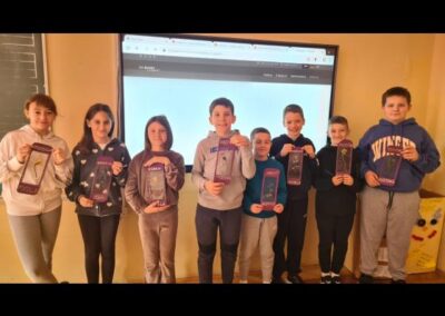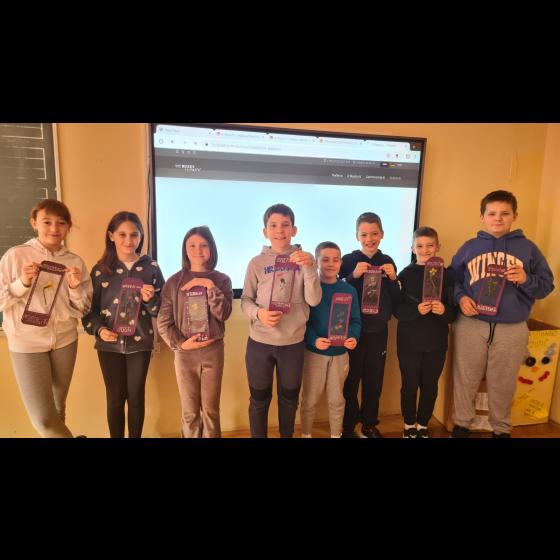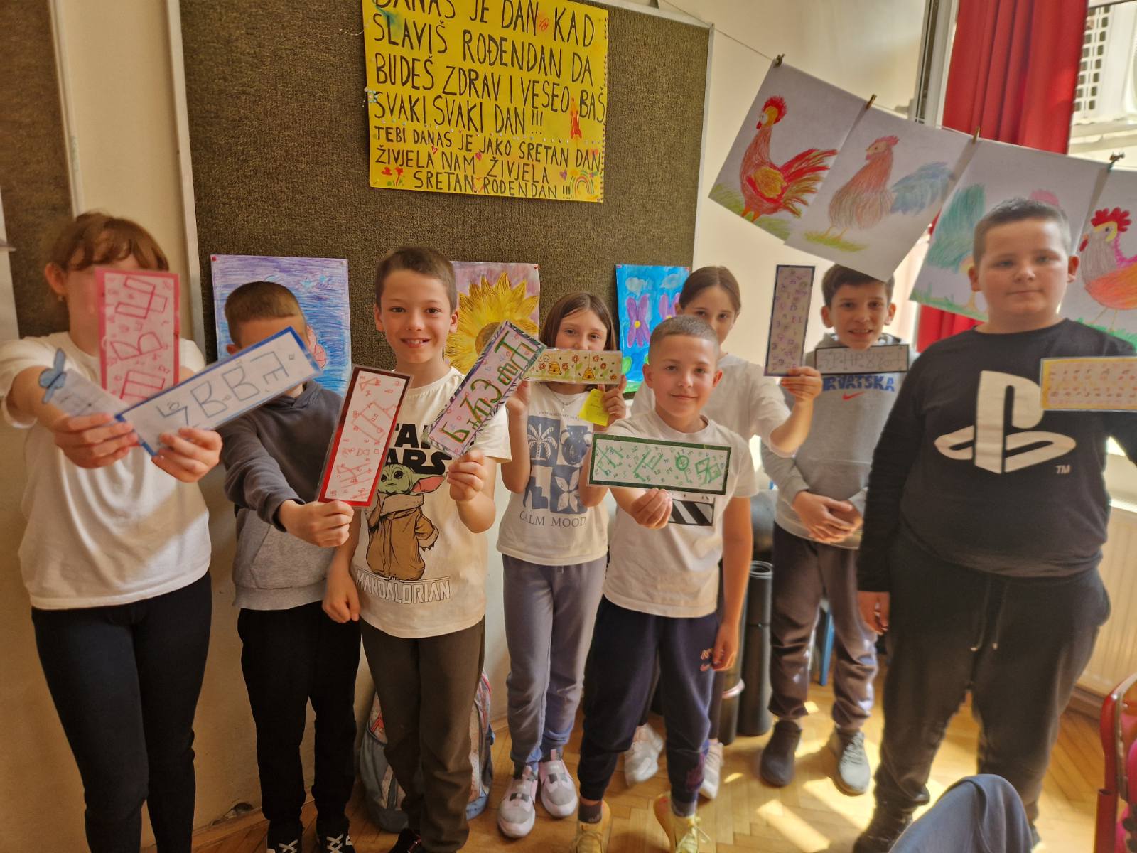 U sklopu eTwinning projekta Igrajmo se glagoljicom 5 učenici 4.b razreda, uz vodstvo učiteljice Marijane Leventić i knjižničarke Anite Drenjančević, razmjenili su u travnju straničnike s učenicima iz OŠ Dragutina Lermana iz Brestovca.