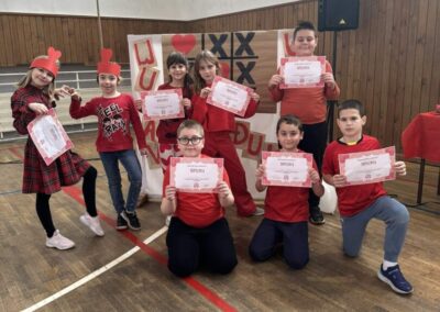 Danas su učenici razredne nastave u našoj školi s veseljem obilježili Valentinovo kroz niz prigodnih i zabavnih aktivnosti. Školom su odzvanjali smijeh, pjesma i glazba, a učenici su s velikim oduševljenjem sudjelovali u plesnim i natjecateljskim igrama.